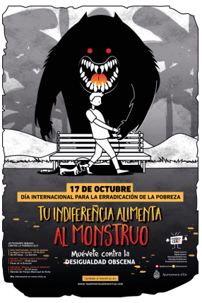 El Día de la pobreza se realizó una carrera, en la cual había que superar una serie de hitos esquivando a voluntarios maquillados siguiendo la estética del monstruo. Al finalizar la misma se realizó un concierto de Joancho Marqués y Hakuna Tanaka, al que asistieron más de 500 jóvenes de las edades objetivo (entre 16 y 20 años).